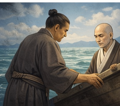 西郷隆盛と月照は、ともに海へ身を投じる。